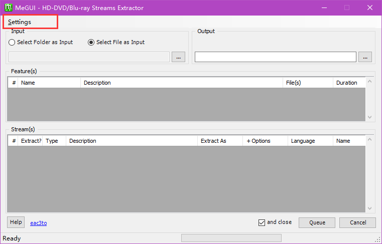 eac3to 有一个方便的 GUI,叫做 HD DVD/Blu-Ray Stream Extractor,它作为一个工具集成在 MeGUI 中。你可以在这里下载 MeGUI:https://sourceforge.net/projects/megui/。