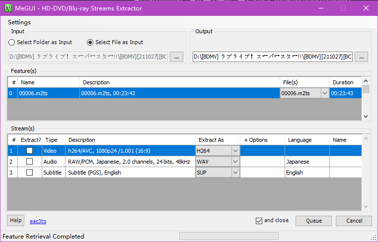 在输入部分选择 m2ts,就可以看到能够抽取的轨道。