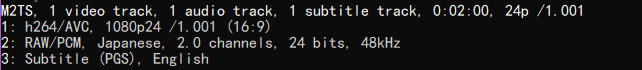 可以使用这个命令查看 m2ts 的各轨道信息。