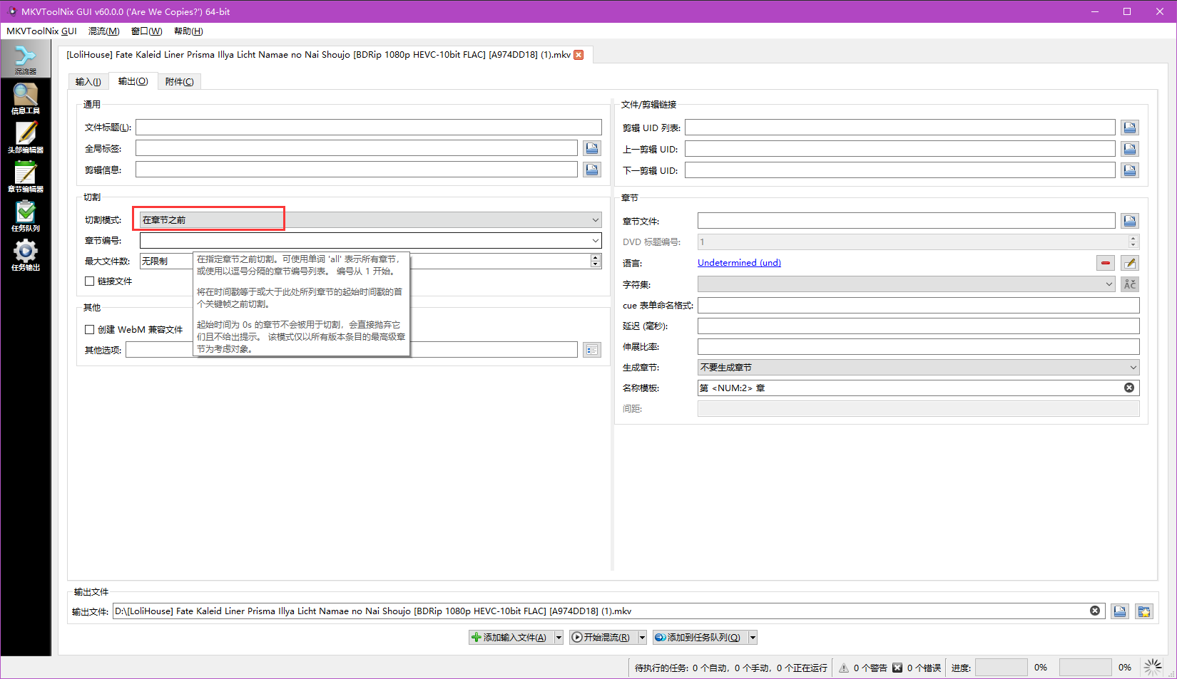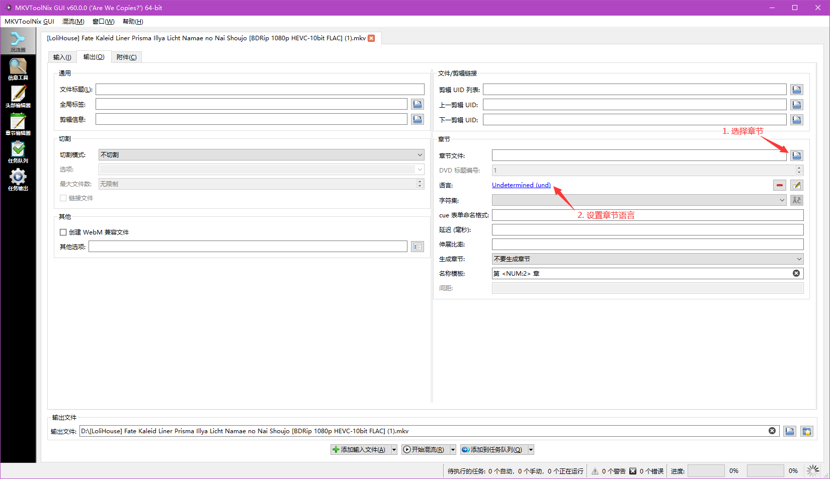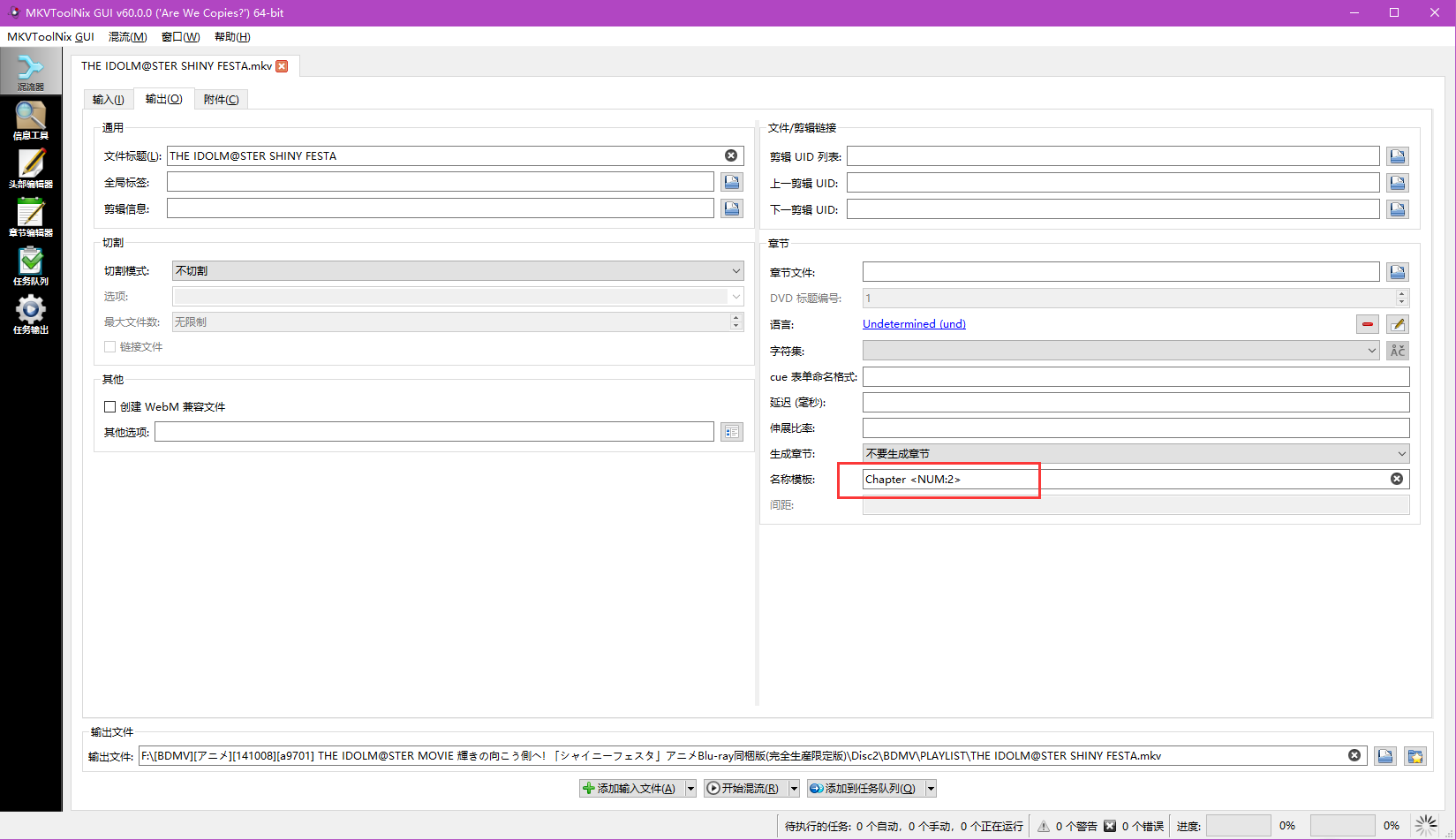 MKVToolNix 也可以合并章节,不过需要注意,确保这里的章节命名模板设为【Chapter \<NUM:2>】,而不是【第 \<NUM:2> 章】。