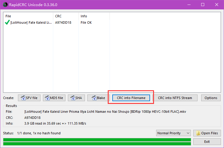 我们需要用到 RapidCRC 这个工具,打上 CRC32。