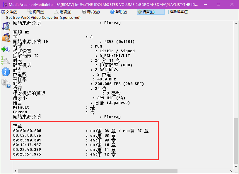 如果你的 m2ts 保持了原盘目录结构,eac3to 还可以检测到其章节,不过有时即使保持原盘目录也会检测失败。