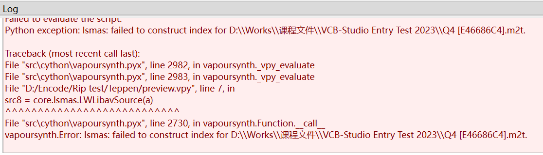 这里使用的是相对路径,需要保证 00010.m2ts 和 vpy 脚本在同一目录下。