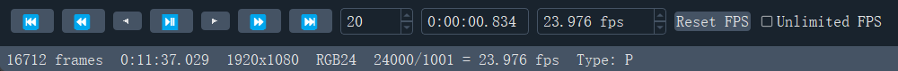注意 VS 里帧数是 0-indexed 的,比如这个视频的帧数就是 0-16711,一共 16712 帧。