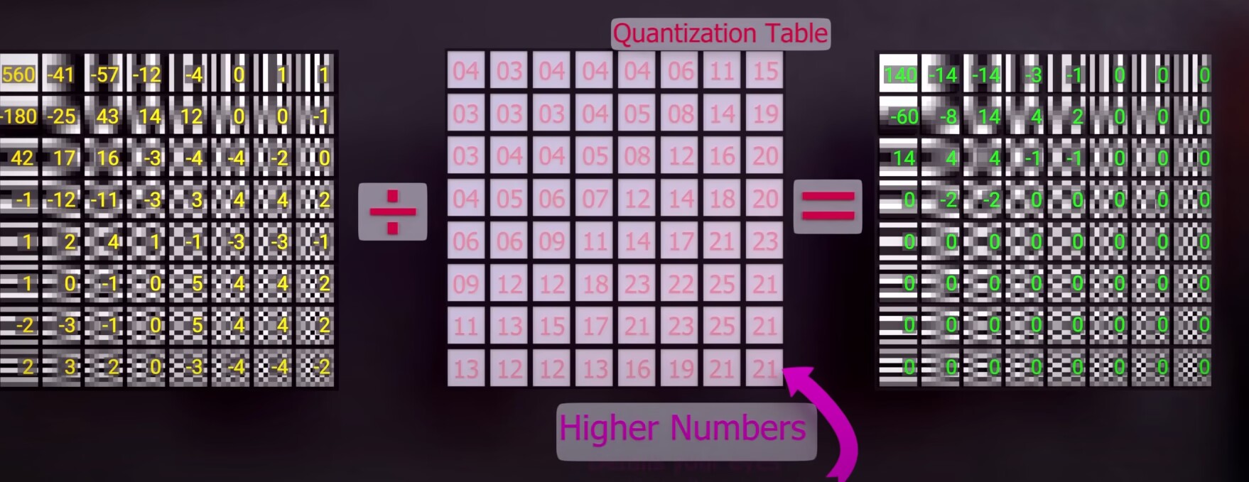 我们将结果通过除以另一个表格,这个表格叫做量化表。