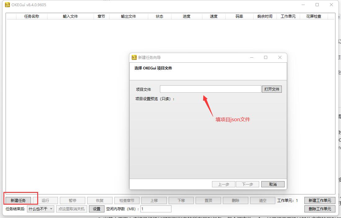 如果 OKE 处于运行状态,新建工作单元会立刻生效,找出下一个待压制任务,立刻开始执行。