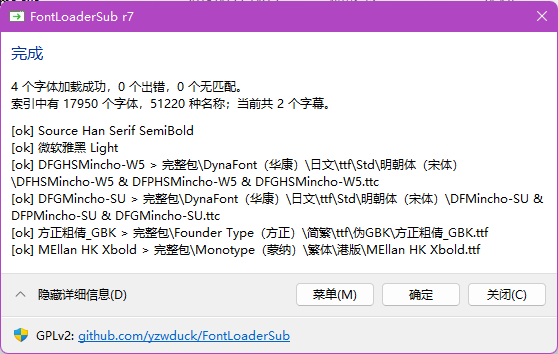 当然,和字幕组合作时,对方都会给出字体包,可以用 FontLoaderSub 临时挂载,或者直接安装,但无论使用哪种都需要验证压制之前已经安装/挂载好所有需要的字体。